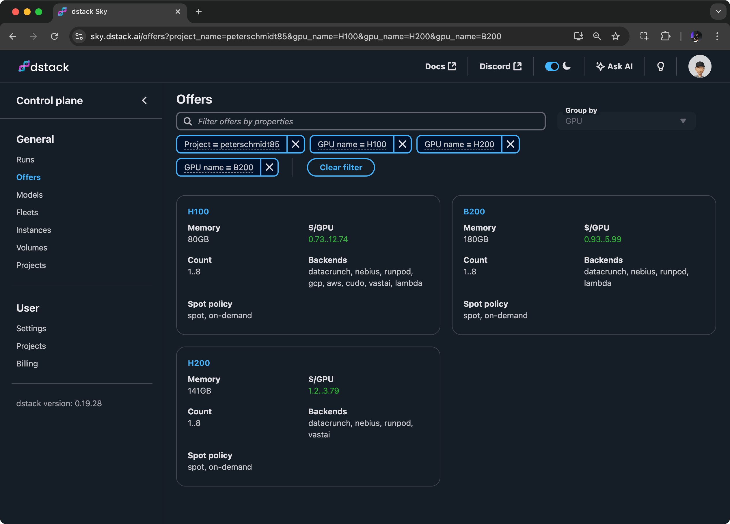 If you want unified access to low-cost on-demand and spot GPUs across multiple clouds, try dstack Sky .